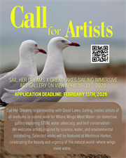 Sail Her Dreams, in partnership with Great Lakes Sailing, invites artists of all mediums to submit their work for Where Wings Meet Water, an immersive art gallery exploring the intersection of STEM, water advocacy, and bird conservation.